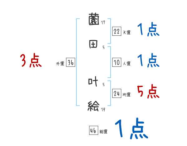 外運![]() | 薗田叶絵さんの外運は36画の3つ星!先見性が豊かです。多少神経質で苦労することも。 生活面を象徴する運勢です。外部から受ける影響力を表し、結婚運、家庭運や職場、環境への順応性を表します。 |