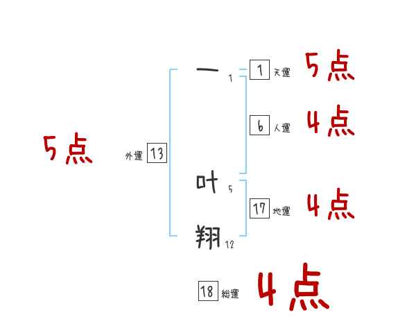 一叶翔さんの画数の鑑定結果
