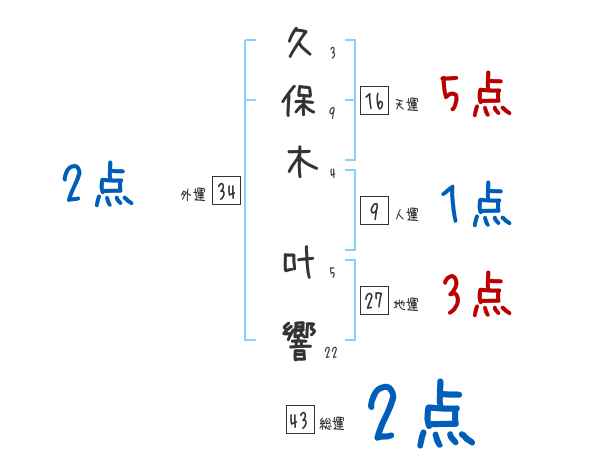 久保木叶響さんの画数の鑑定結果
