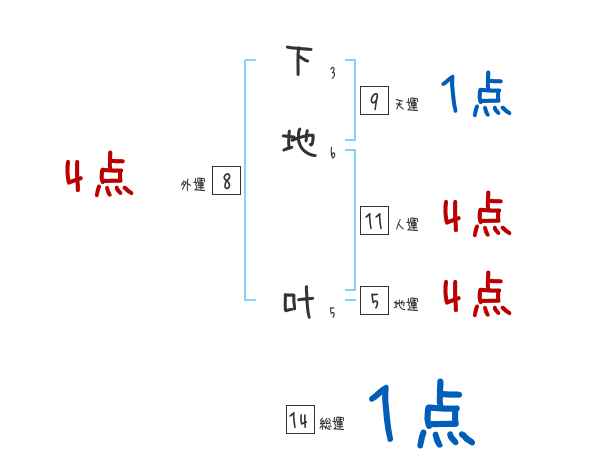 天運![]() | 下地叶さんの天運は9画の1つ星!消極的で才能を発揮することが苦手なことも。周りの意見に耳を傾けましょう。 家系が持つ宿命的な運勢を表します。祖先から受け継いだ苗字ですので自分の力が及びません。家柄を象徴します。 |