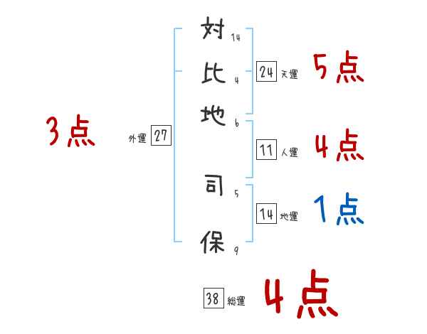 対比地司保さんの画数の鑑定結果