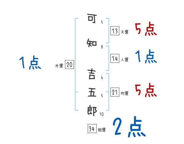可知吉五郎さんの画数の鑑定結果