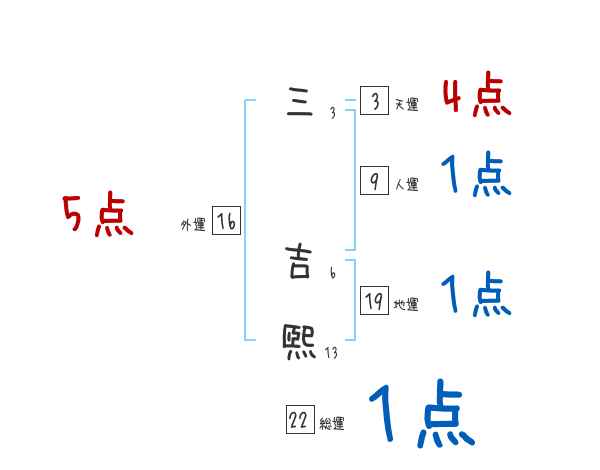 三吉煕さんの画数の鑑定結果