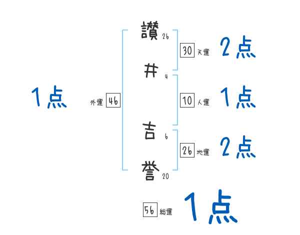 讃井吉誉さんの画数の鑑定結果