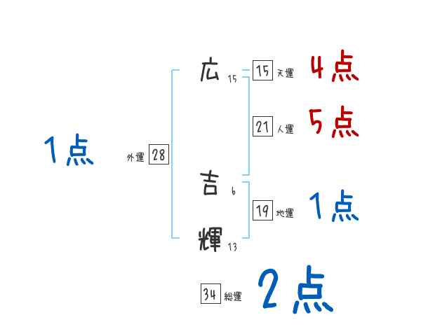 広吉輝さんの画数の鑑定結果
