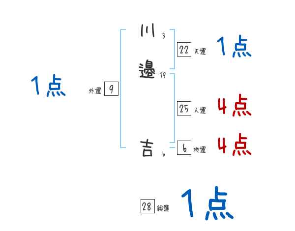 川邉吉さんの画数の鑑定結果