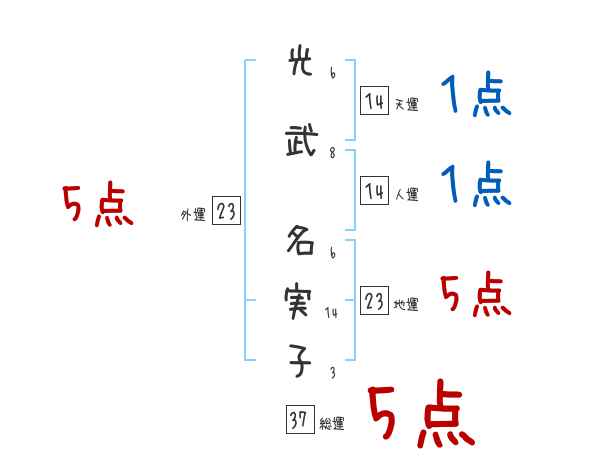 天運![]() | 光武名実子さんの天運は14画の1つ星!人に対して優しいがストレスを溜め込みがち。人間関係のトラブルを避けるよう気をつけましょう。 家系が持つ宿命的な運勢を表します。祖先から受け継いだ苗字ですので自分の力が及びません。家柄を象徴します。 |