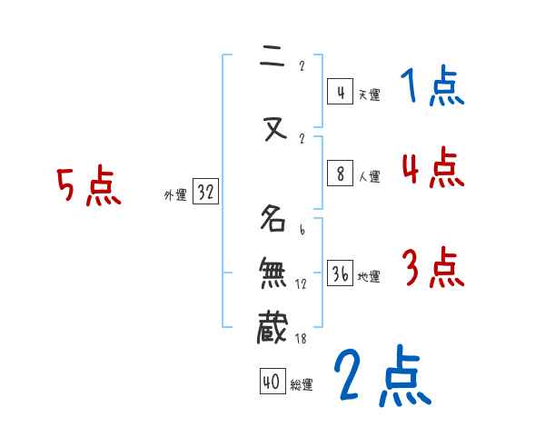 外運![]() | 二又名無蔵さんの外運は32画の5つ星!柔軟性があり成功する。チャンスが多く金運が良い。 生活面を象徴する運勢です。外部から受ける影響力を表し、結婚運、家庭運や職場、環境への順応性を表します。 |