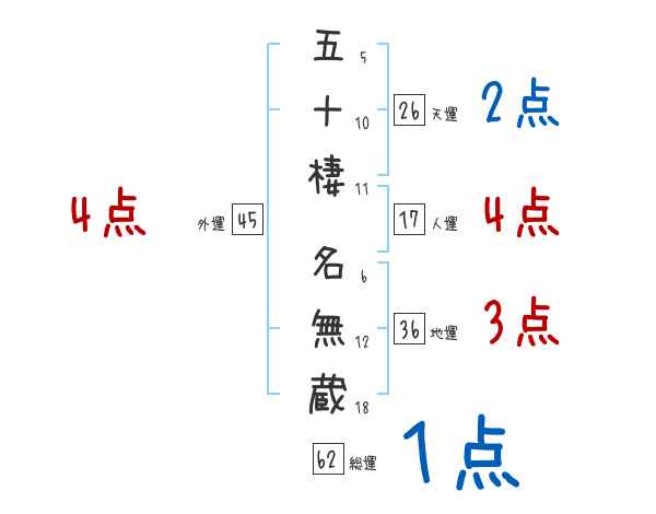 五十棲名無蔵さんの画数の鑑定結果