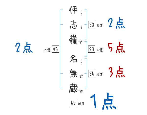 伊志嶺名無蔵さんの画数の鑑定結果