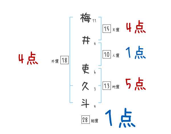 梅井吏久斗さんの画数の鑑定結果