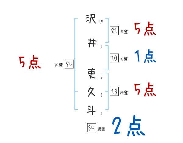 沢井吏久斗さんの画数の鑑定結果