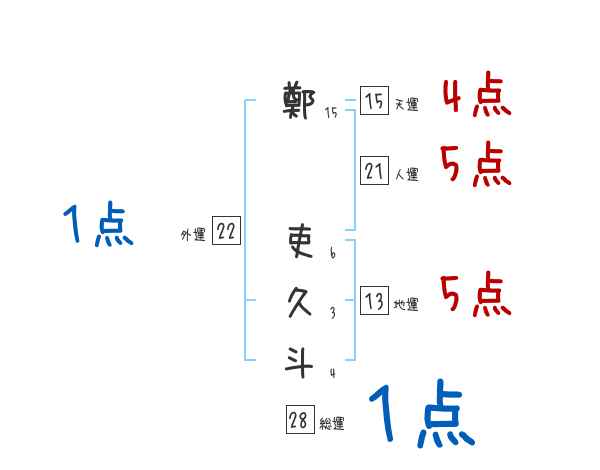 鄭吏久斗さんの外運は22画の1つ星