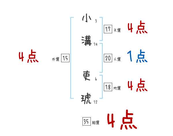 小溝吏琥さんの画数の鑑定結果