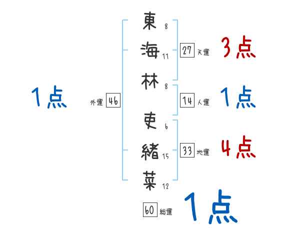 地運![]() | 東海林吏緒菜さんの地運は33画の4つ星!権力志向でプライドが高い。勇気があり運を切り開き成功する。 個性を表す基礎的な運勢です。性格形成や対人関係、行動力など家庭環境に影響されます。主に誕生してから20歳くらいまでの若年期の運勢を表します。 |