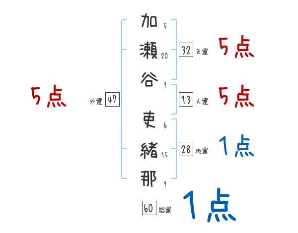 加瀬谷吏緒那さんの外運は47画の5つ星