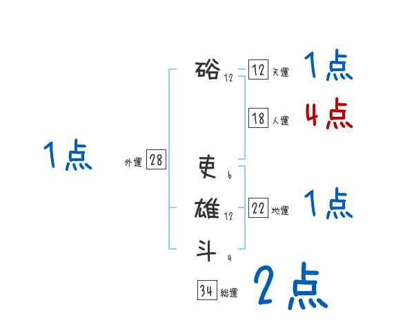 硲吏雄斗さんの画数の鑑定結果