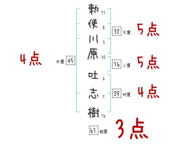 家系が持つ宿命的な運勢を表します。祖先から受け継いだ苗字ですので自分の力が及びません。家柄を象徴します。