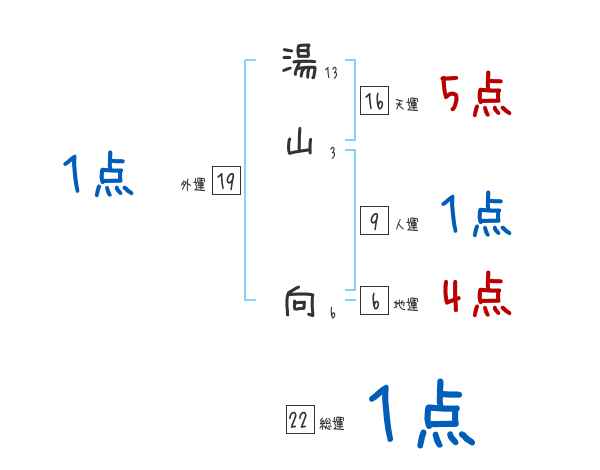 湯山向さんの画数の鑑定結果