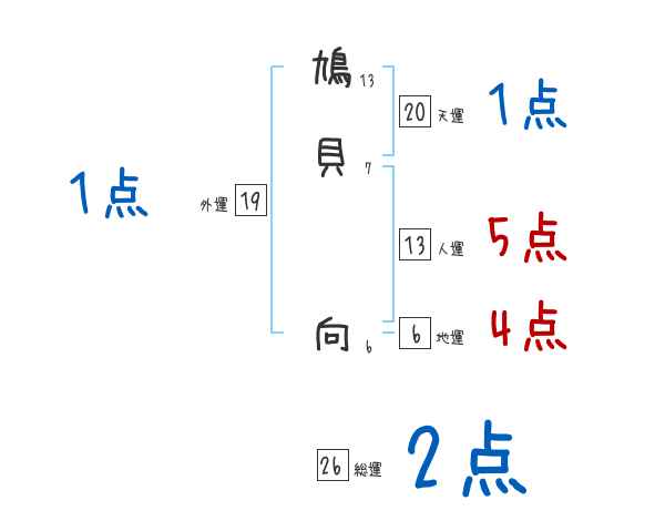 鳩貝向さんの画数の鑑定結果