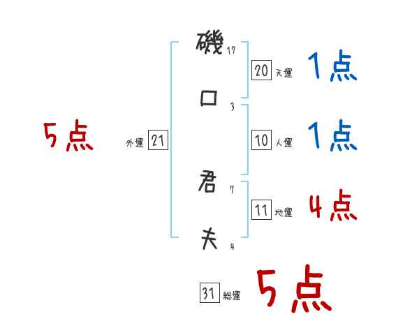 磯口君夫さんの画数の鑑定結果