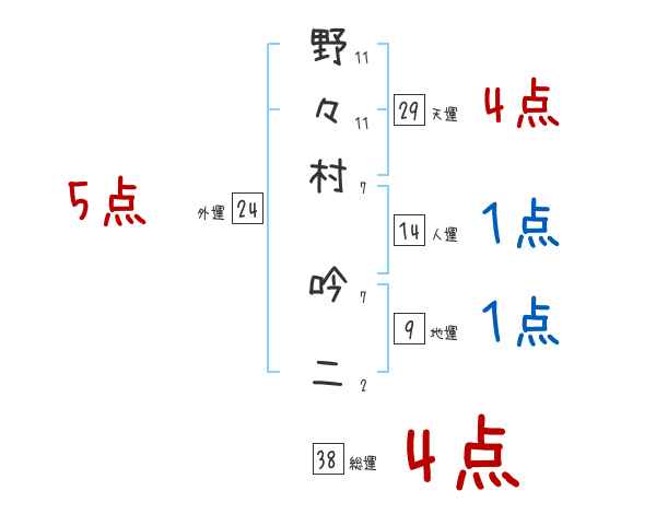 野々村吟二さんの画数の鑑定結果