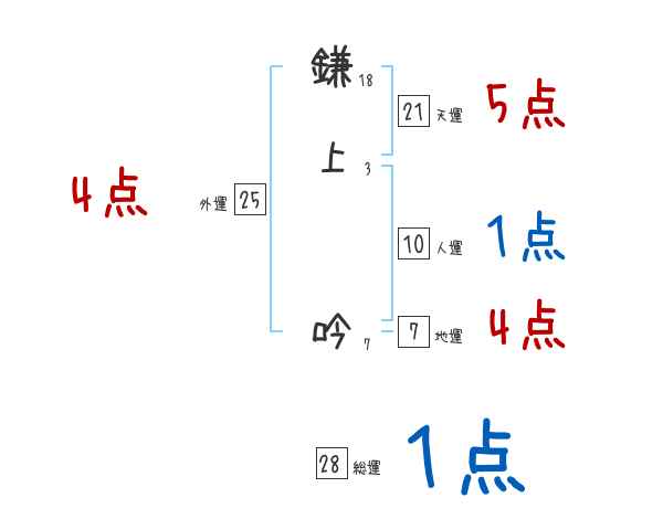 鎌上吟さんの画数の鑑定結果