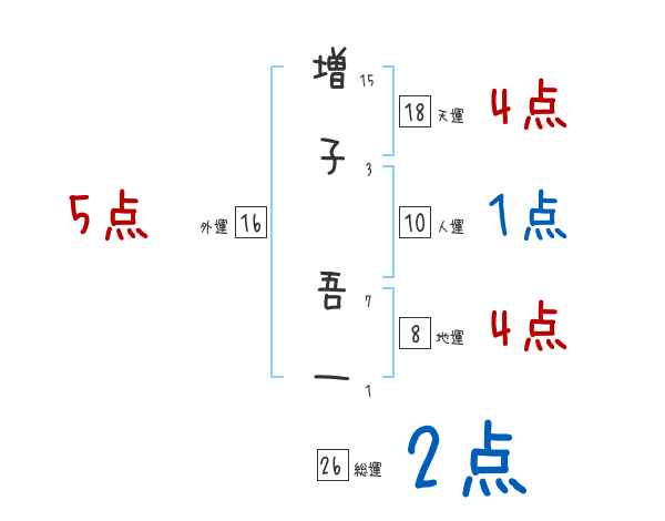 増子吾一さんの画数の鑑定結果