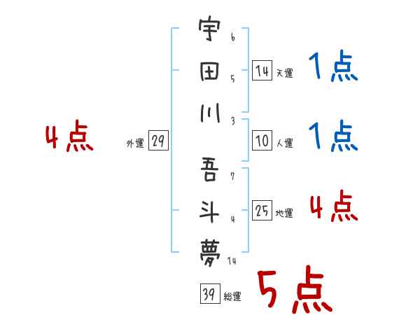 宇田川吾斗夢さんの画数の鑑定結果