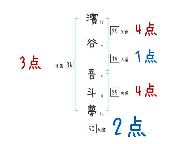 濱谷吾斗夢さんの画数の鑑定結果