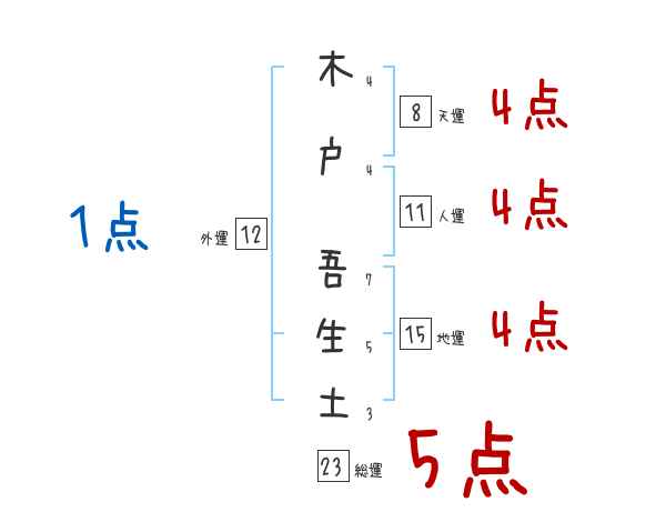 家系が持つ宿命的な運勢を表します。祖先から受け継いだ苗字ですので自分の力が及びません。家柄を象徴します。