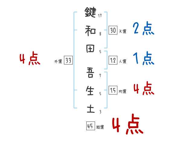 鍵和田吾生土さんの画数の鑑定結果