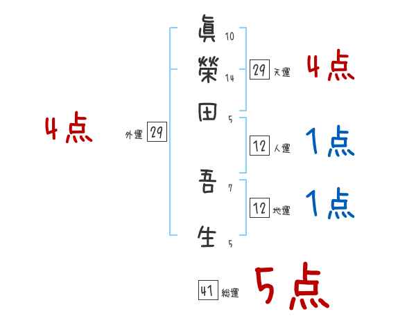 眞榮田吾生さんの画数の鑑定結果