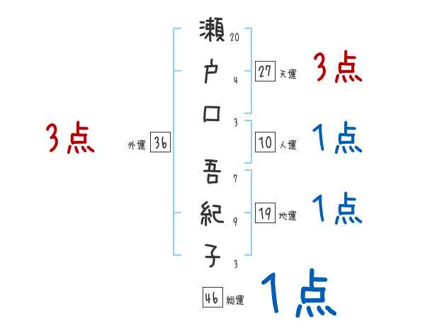 瀬戸口吾紀子さんの外運は36画の3つ星