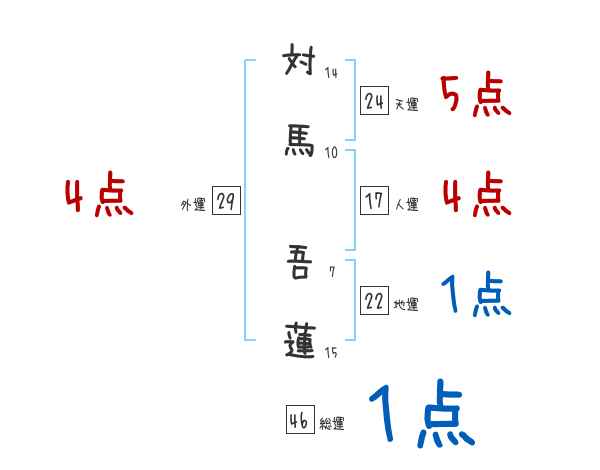 対馬吾蓮さんの画数の鑑定結果