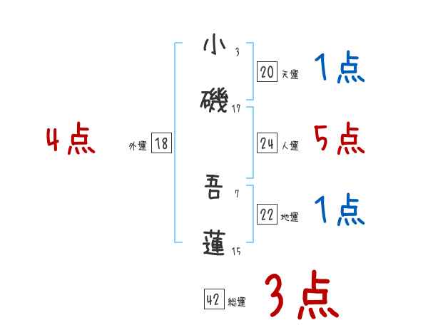 小磯吾蓮さんの画数の鑑定結果