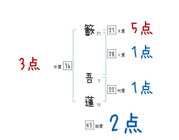 籔吾蓮さんの画数の鑑定結果