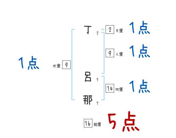 丁呂那さんの画数の鑑定結果