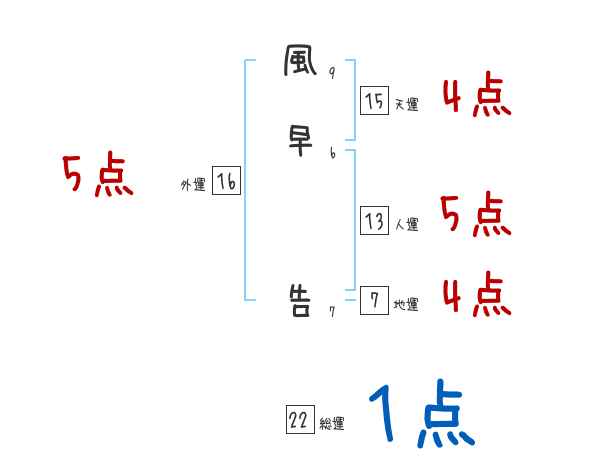 風早告さんの画数の鑑定結果