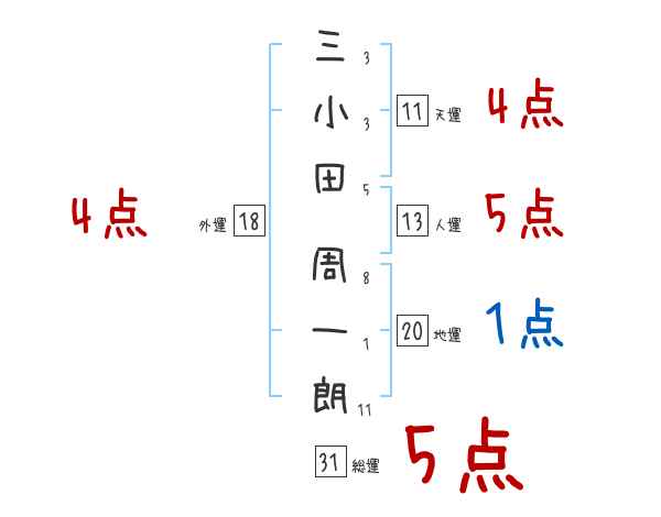 三小田周一朗さんの画数の鑑定結果