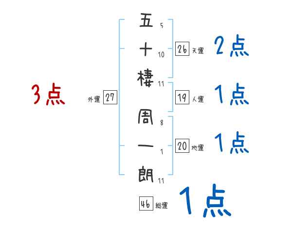 五十棲周一朗さんの画数の鑑定結果