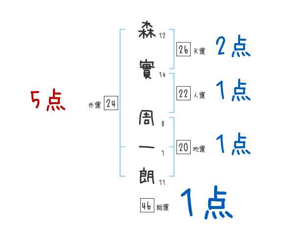 森實周一朗さんの画数の鑑定結果