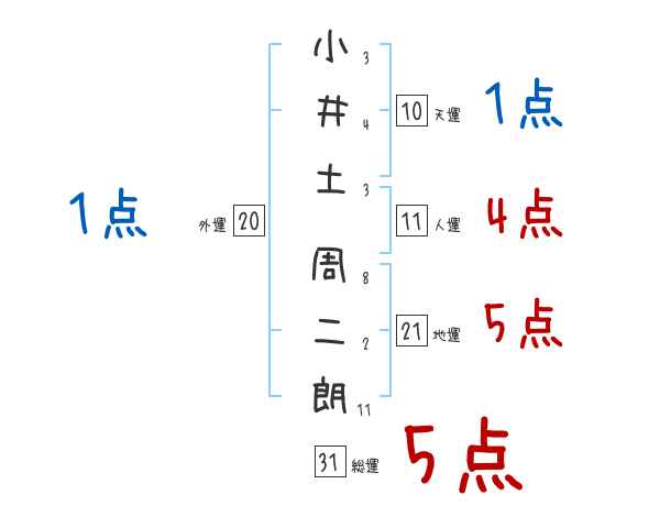 総運![]() | 小井土周二朗さんの総運は31画の5つ星!社交性があり判断力に優れる。順風満帆な人生で円満な生活。 あなたの人生を表す1番重要な運勢です。生涯を通じて影響する総合運となり、主に50歳以降の晩年期に影響を及ぼします。 |