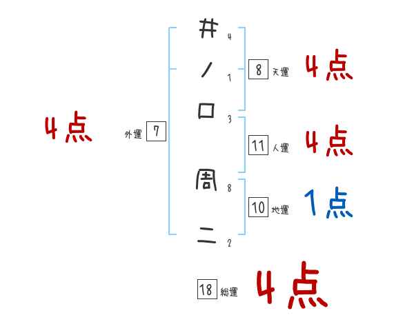天運![]() | 井ノ口周二さんの天運は8画の4つ星!勤勉家。根気強く努力し成功する。忍耐力がある。 家系が持つ宿命的な運勢を表します。祖先から受け継いだ苗字ですので自分の力が及びません。家柄を象徴します。 |