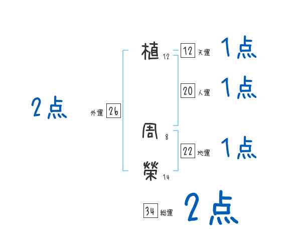 植周榮さんの総運は34画の2つ星