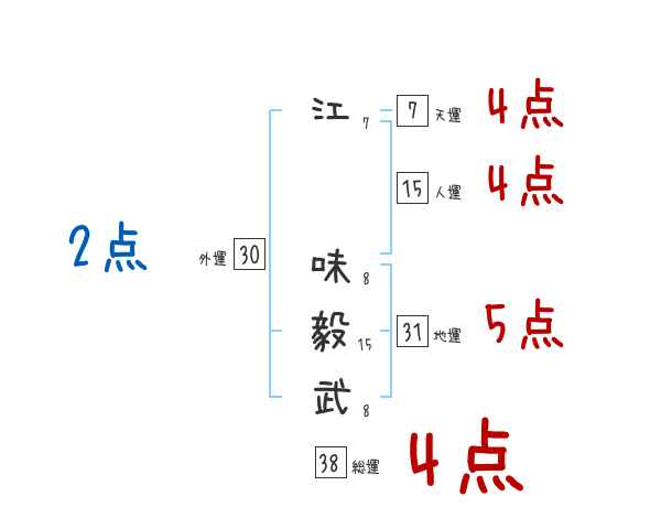 江味毅武さんの画数の鑑定結果