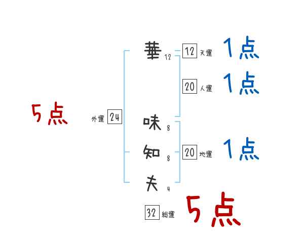 総運![]() | 華味知夫さんの総運は32画の5つ星!柔軟性があり成功する。チャンスが多く金運が良い。 あなたの人生を表す1番重要な運勢です。生涯を通じて影響する総合運となり、主に50歳以降の晩年期に影響を及ぼします。 |