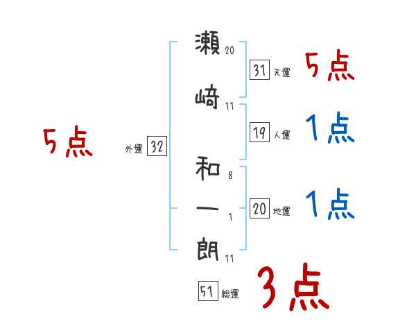 瀬﨑和一朗さんの画数の鑑定結果