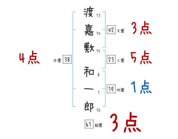 渡嘉敷和一郎さんの画数の鑑定結果