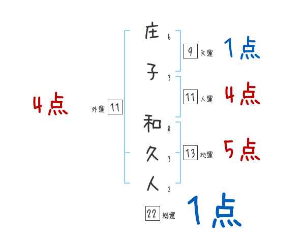 庄子和久人さんの画数の鑑定結果
